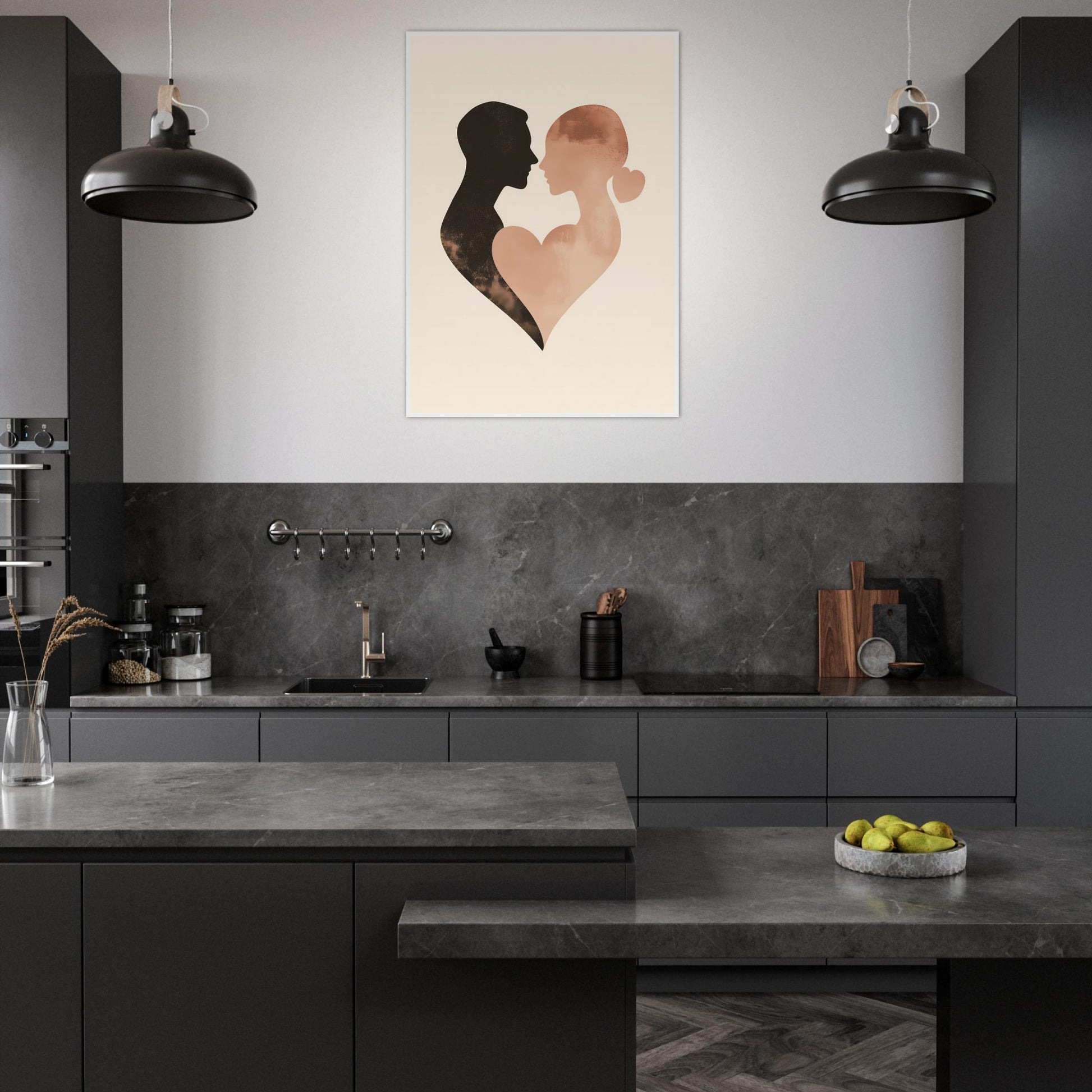 Couple Silhouettes #1 | Premium Poster Wooden Frame